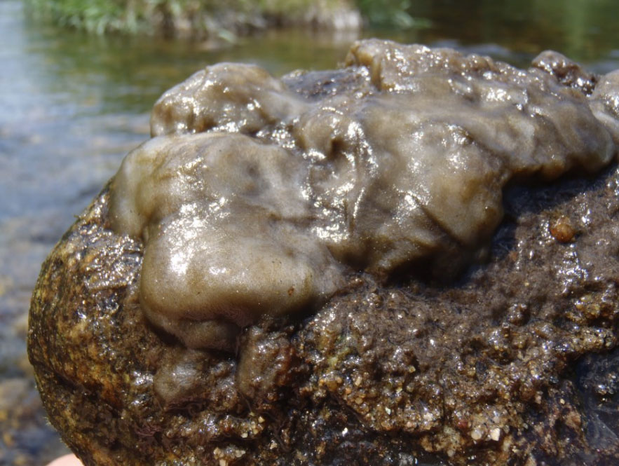 Didymo is an invasive species of alga that can be detrimental to a river’s ecosystem for several reasons. Extensive blooms can cover the river bottom for several miles and smother native plants and insects, affecting the whole food chain. Because the food chain is changed, trout populations are affected. Lures can become entangled. Rocks become slippery to walk on, and the esthetic beauty of the river is lessened.